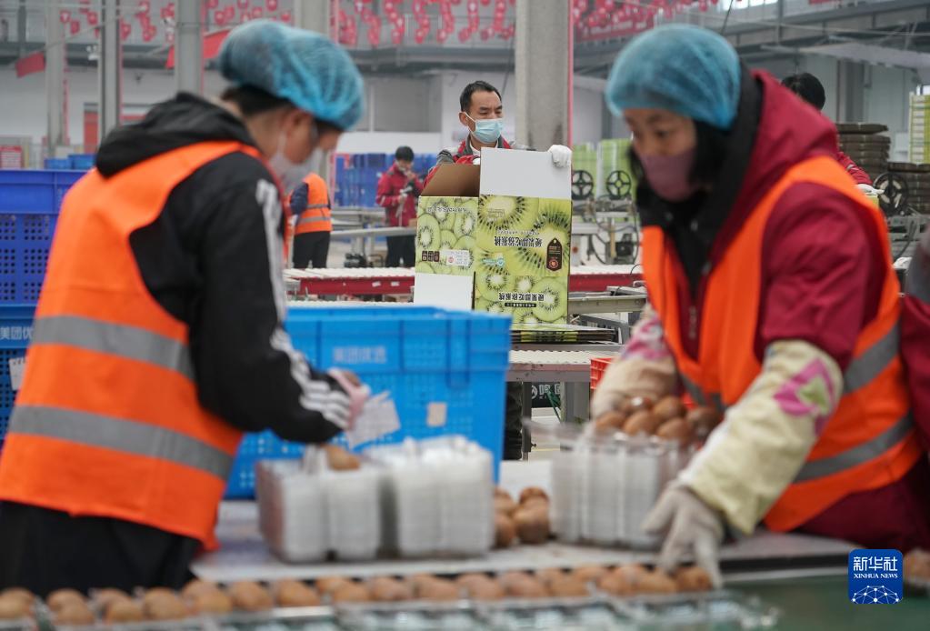 2月6日,在位于武功县的京东物流陕西智能供应链中心,工作人员在包装线上工作。