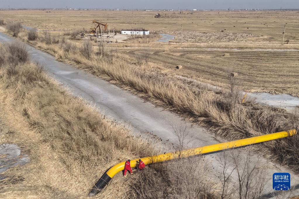 元宵节刚过,工人迎寒风、走冰面,在户外对管线进行巡查,保障供气安全。