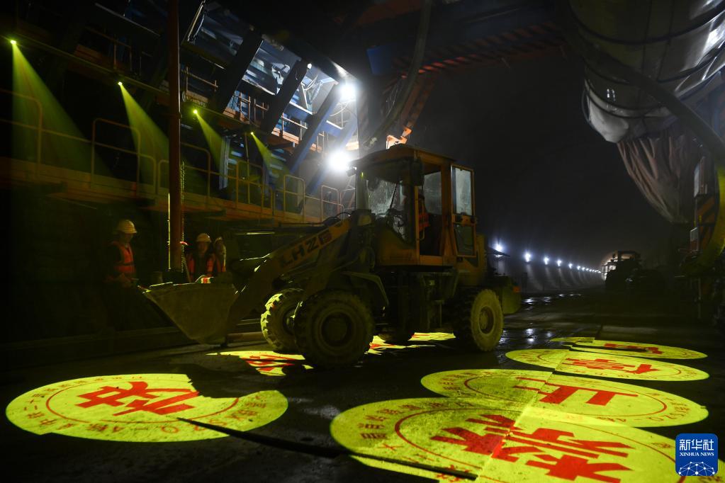 2月6日,中铁二十局工人在位于陕西省商洛市的西十高铁肖岭隧道作业。