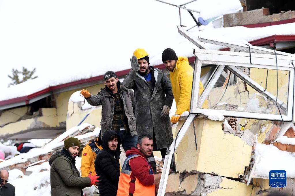 2月7日,人们在土耳其卡赫拉曼马拉什省的埃尔比斯坦地区展开救援工作。