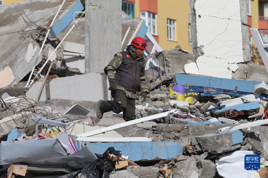 2月7日,救援人员在土耳其南部卡赫拉曼马拉什市地震废墟中搜寻幸存者。
