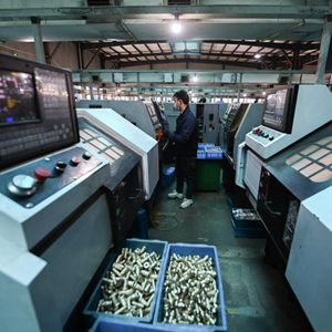 2月7日,在店口镇的浙江铭仕兴新暖通科技有限公司车间内,自动化机床在生产水暖零部件。