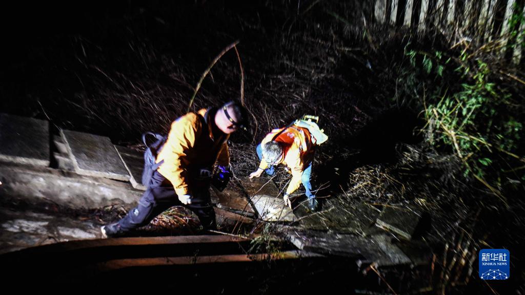 2月8日,钦州电务段钦州高铁通信车间两名通信工在巡查保护地下光缆的石板。