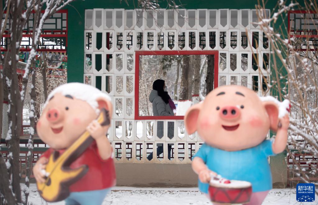 2月8日,在青海省西宁市,市民在人民公园内游览。