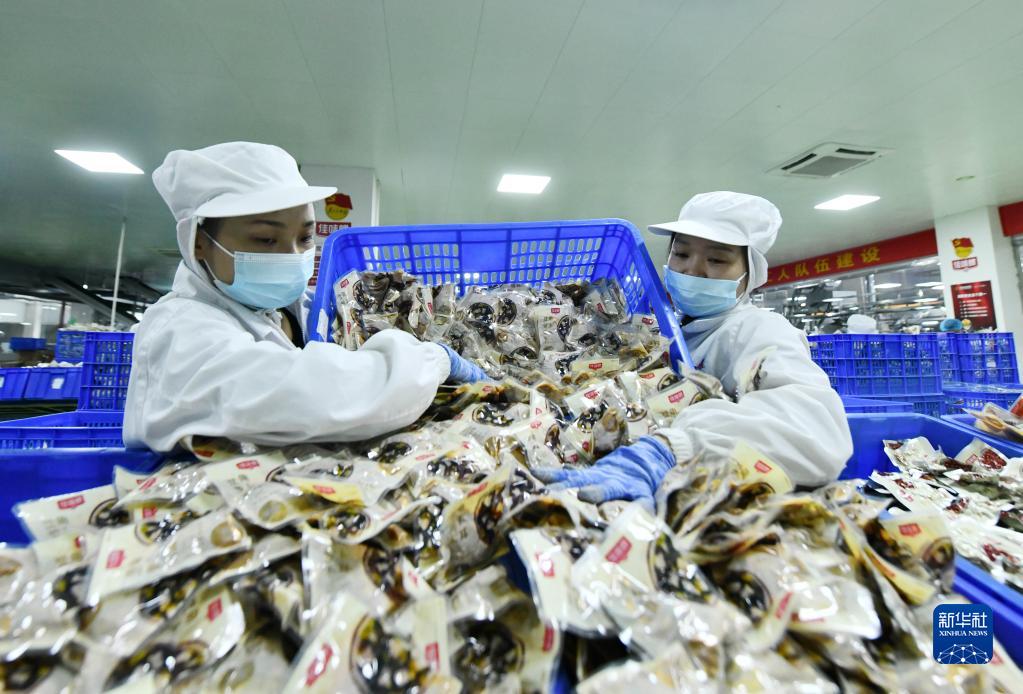 2月8日,工人在柳州螺蛳粉生产集聚区一生产车间包装产品。