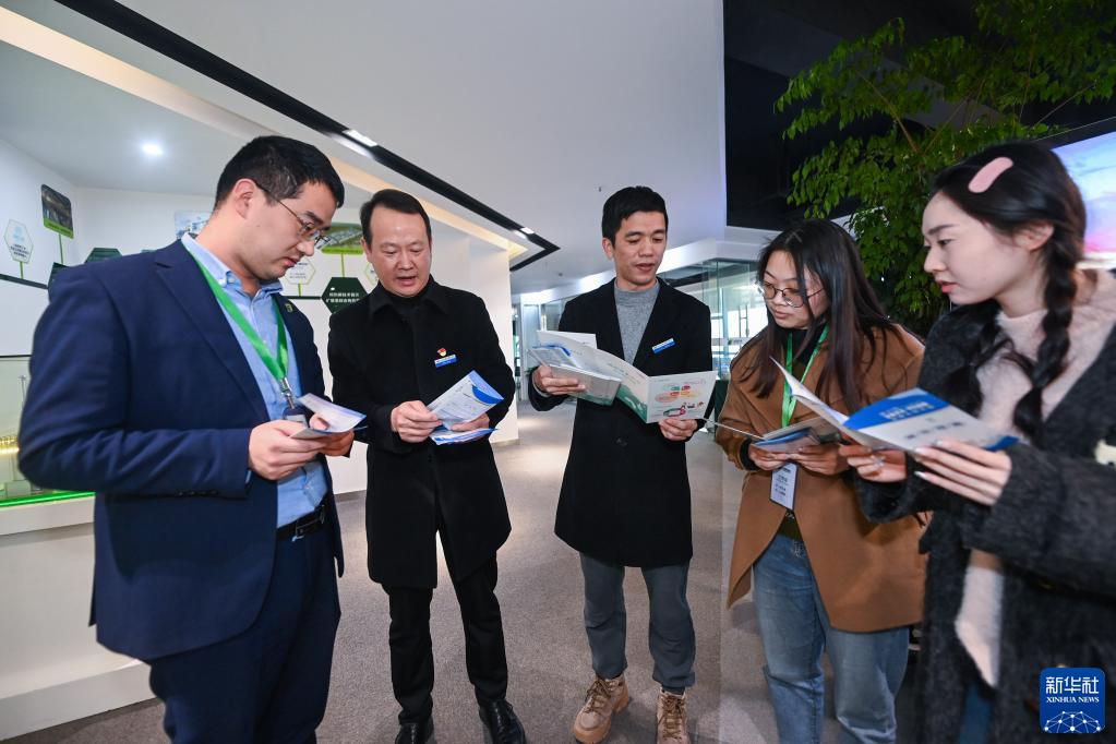 2月8日,湖州市吴兴区中小微企业一站式服务平台的值班代办员(左二、左三)来到一家高新企业,开展“上门办”服务,给企业员工提供人才补贴政策的解读及登记办理。
