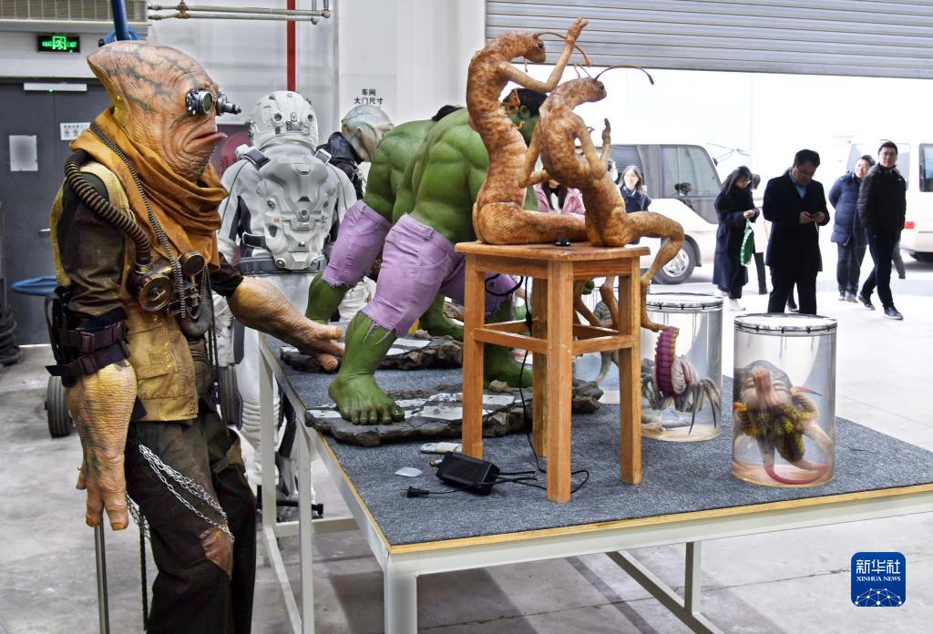 2月8日,访客在青岛东方影都影视产业园置景车间内参观。