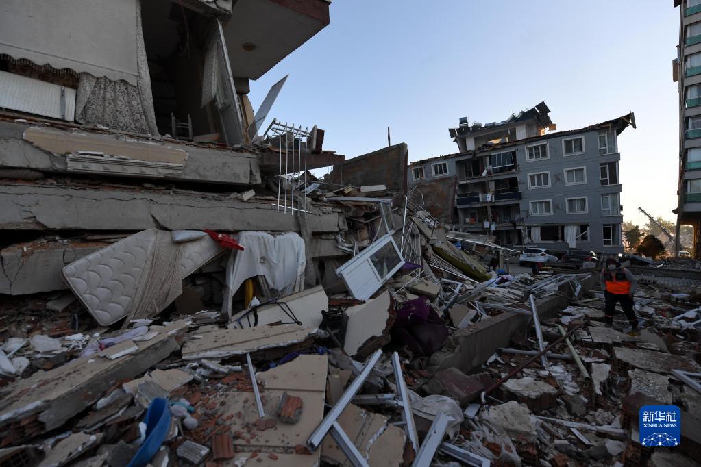 这是2月8日在土耳其哈塔伊拍摄的遭地震损毁的建筑。