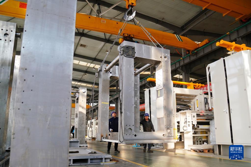 2月6日,在位于河北邢台经济开发区的邢台纳科诺尔精轧科技股份有限公司,工人在生产车间吊装配件。