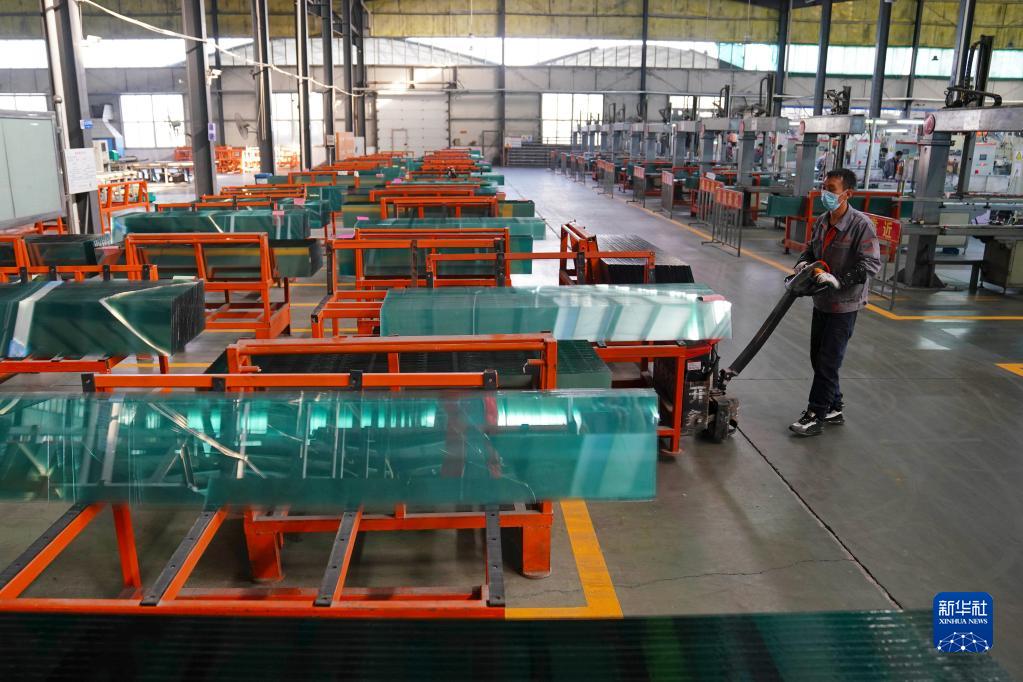 2月6日,在位于河北省沙河市的河北九月厨具股份有限公司,工人在搬运制作锅盖的玻璃原料。