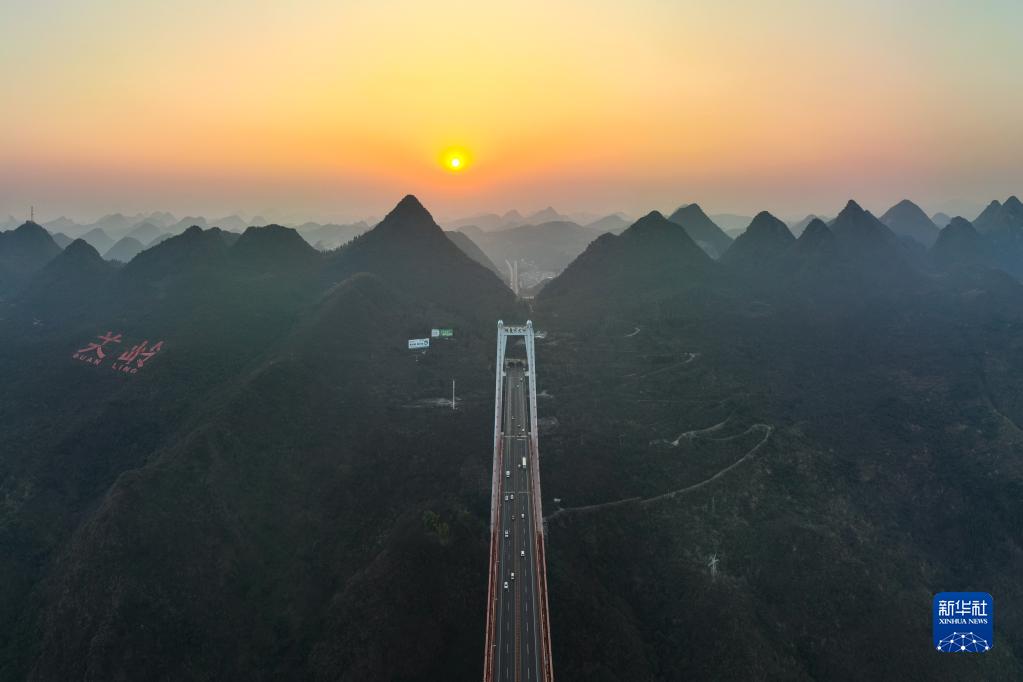 2月1日拍摄的贵州坝陵河大桥(无人机照片)。