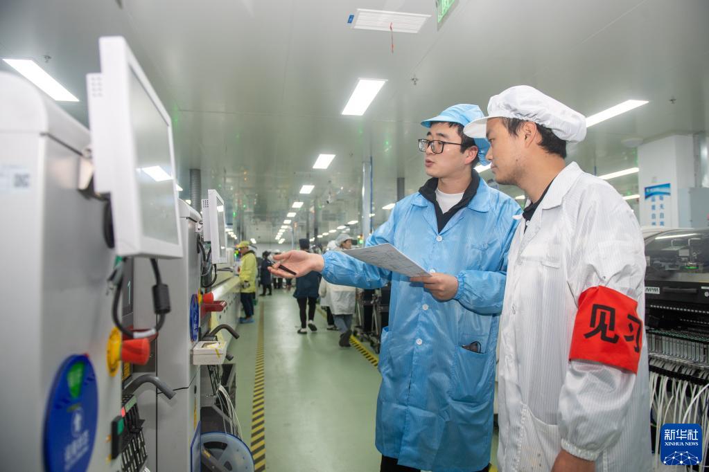 2月9日,在杭州市上城区海兴电力科技股份有限公司的车间内,工程师对新入职的见习员工进行培训教学。由于节后订单生产繁忙,海兴电力科技股份有限公司新招收了400名员工以满足生产需要。