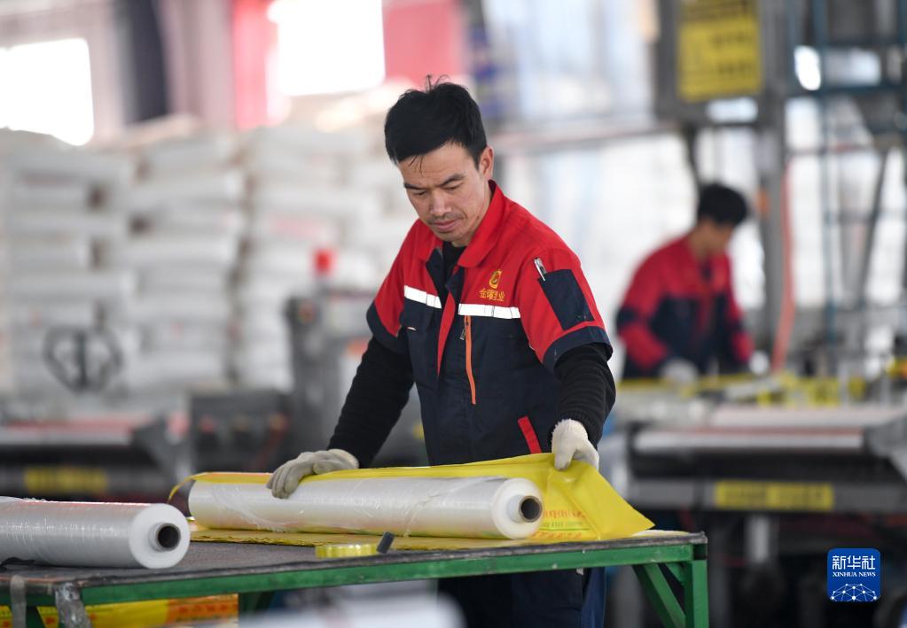 近日,宁夏固原市西吉县地膜生产企业抓紧生产农用地膜,为当地即将开始的春耕做准备。