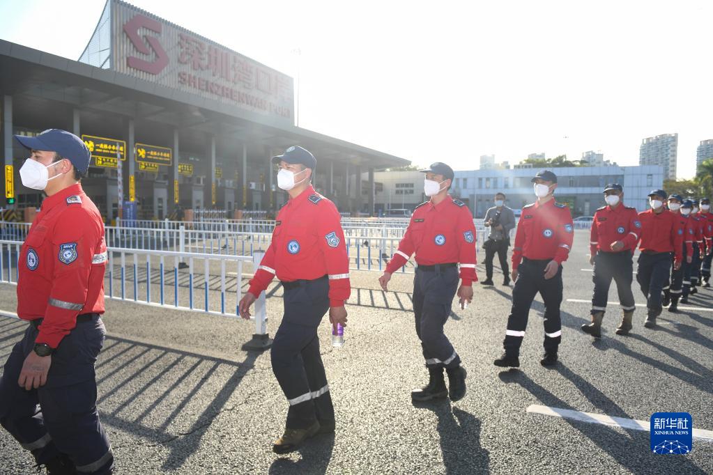 2月9日,深圳公益救援队队员从深圳湾口岸出发。
