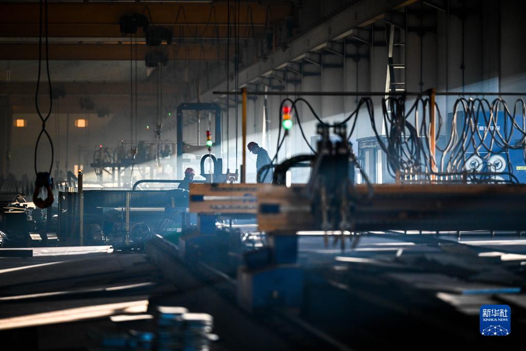 2月2日,在内蒙古通辽市科尔沁区龙马新能源装备制造产业园,工人在生产线上工作。