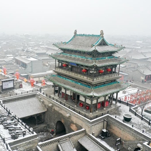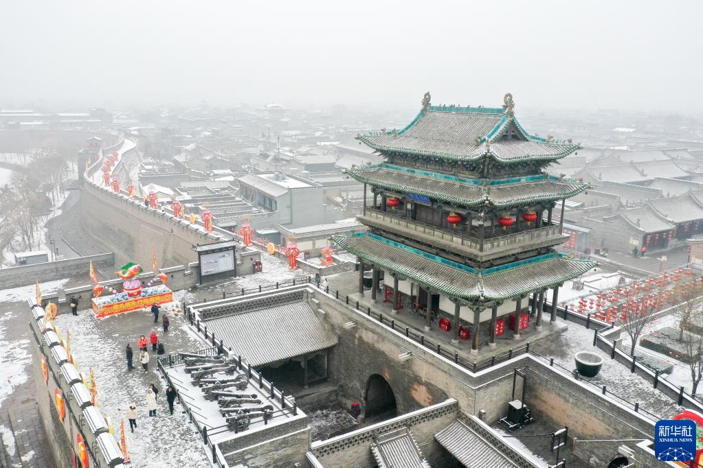 受冷暖空气共同影响,山西晋中平遥古城迎来降雪天气。初春的古城银装素裹,美景如画。