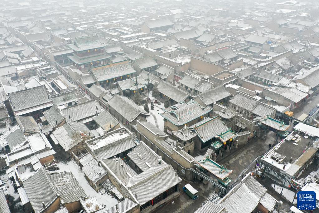 受冷暖空气共同影响,山西晋中平遥古城迎来降雪天气。初春的古城银装素裹,美景如画。