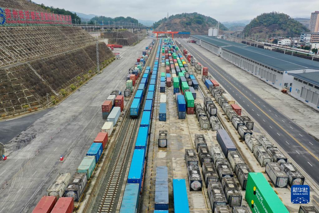 2月9日,中欧班列停靠在贵阳国际陆港都拉营站。