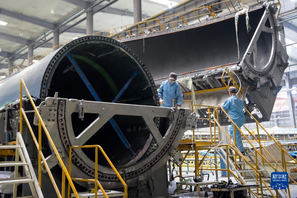 2月9日,工人在株洲时代新材料科技股份有限公司蒙西分公司风力发电叶片生产车间内作业。