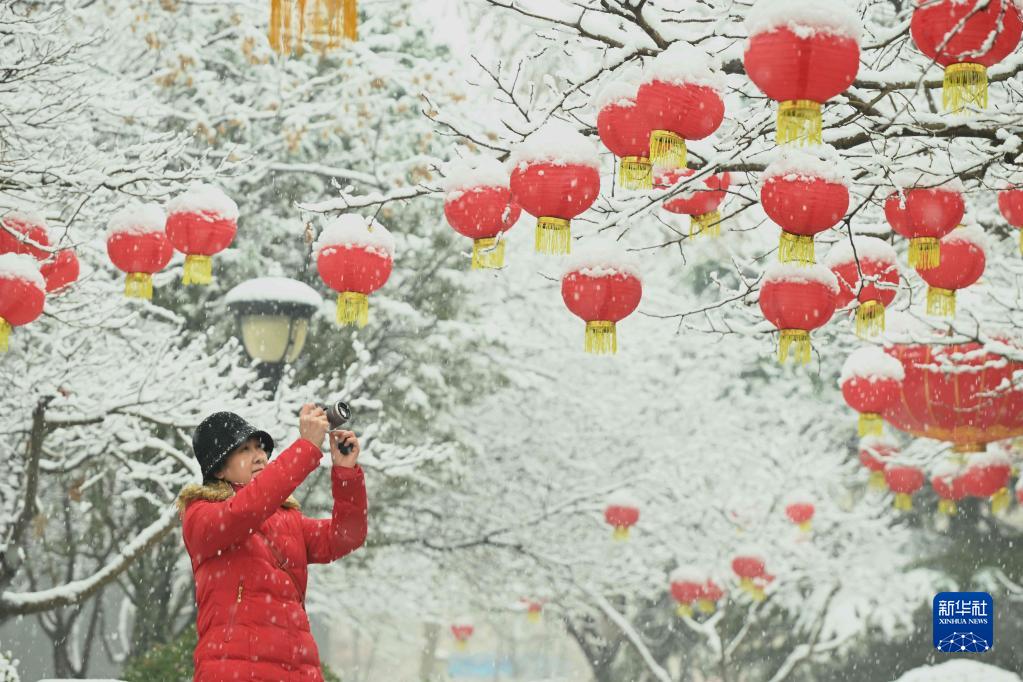 2月9日,市民在河北省石家庄市桥西区元南公园拍摄雪景。