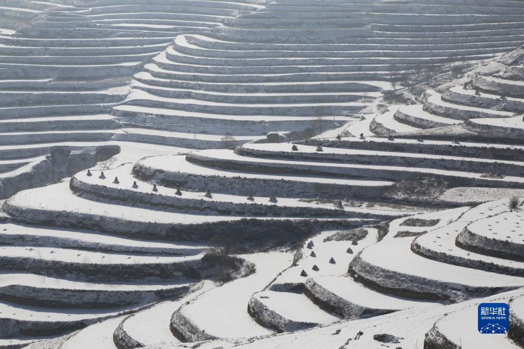 这是2月9日在甘肃省定西市安定区青岚山乡拍摄的梯田雪景。