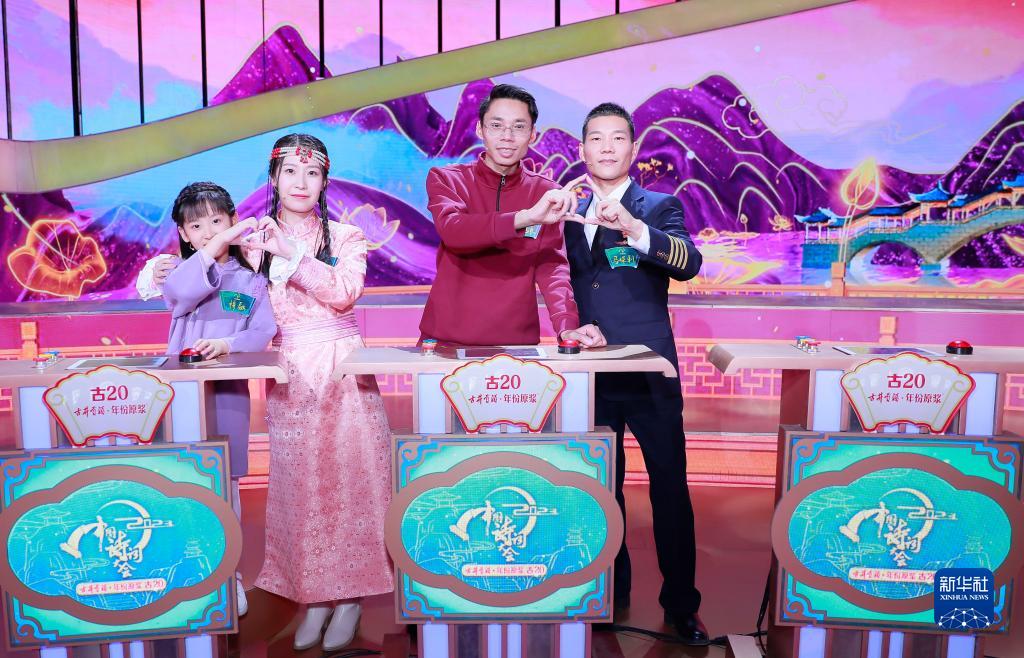 马保利(右一)在《2023中国诗词大会》录制现场(资料照片)。