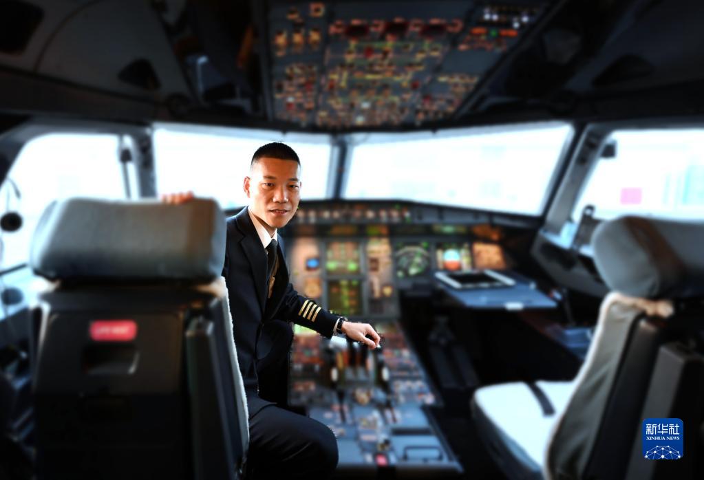 马保利在飞机驾驶舱内(2月4日摄)(驾驶舱进行了虚化处理)。