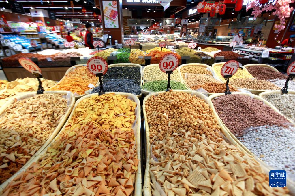 2月10日,顾客在山东省临沂市平邑县一家超市选购物品。