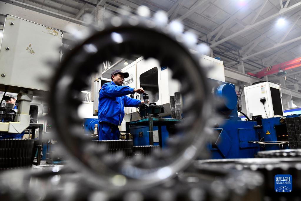 2月10日,一企业工作人员在加工变速箱齿轮。