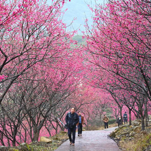 近日,位于福建省福清市的灵石山国家森林公园内的樱花竞相绽放,吸引游客前来赏樱休闲。