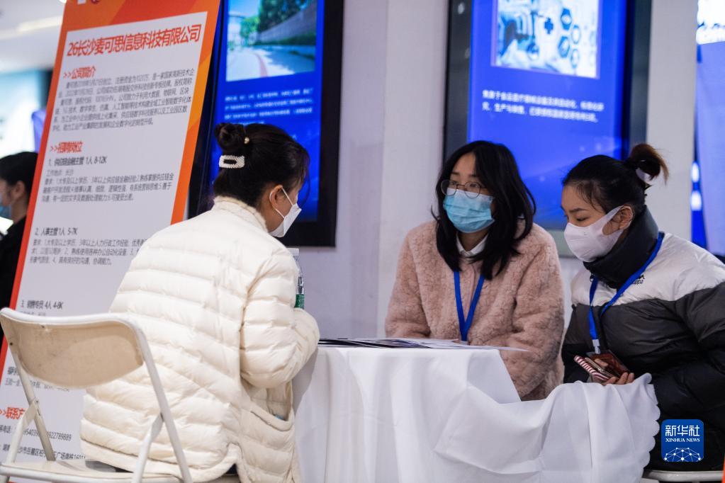 2月10日,在长沙麓谷科技创新创业园,招聘人员与求职者沟通。