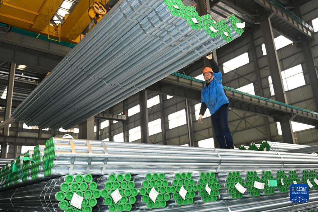 2月10日,工人在位于浙江湖州吴兴区八里店镇的金洲管道科技股份有限公司装货车间作业。