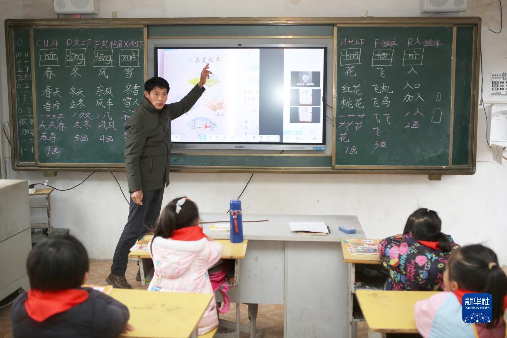 在楠木乡官溪小学,赖小田给孩子们上语文课(2月7日摄)。