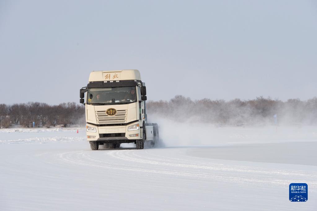 2月10日,在黑河小乌斯力测试基地,车辆进行寒区试验。