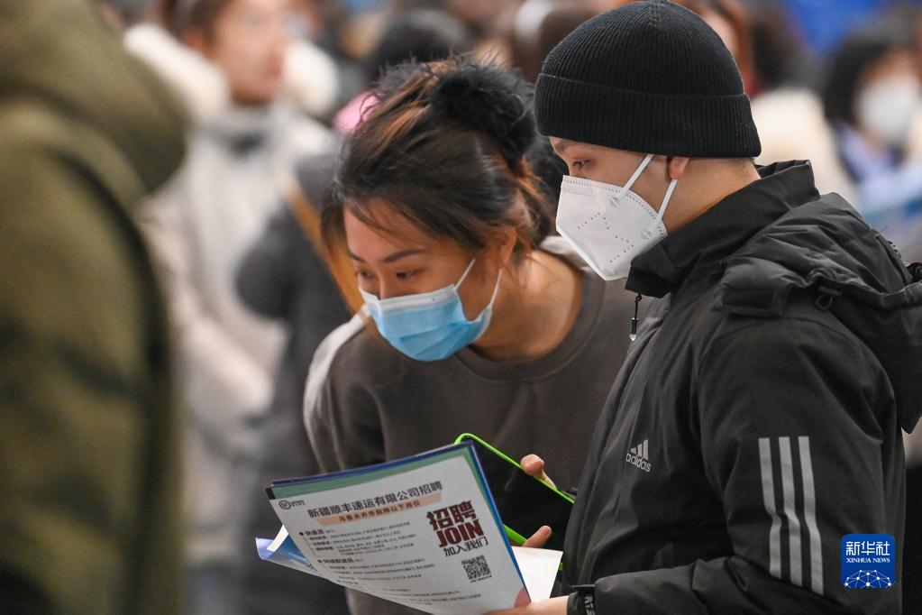 2月11日,在新疆国际会展中心举行的2023新疆春季人才交流会上,求职者了解岗位情况。