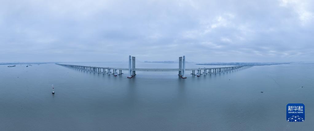 这是2月4日拍摄的福厦高铁泉州湾跨海大桥(无人机合成照片)。