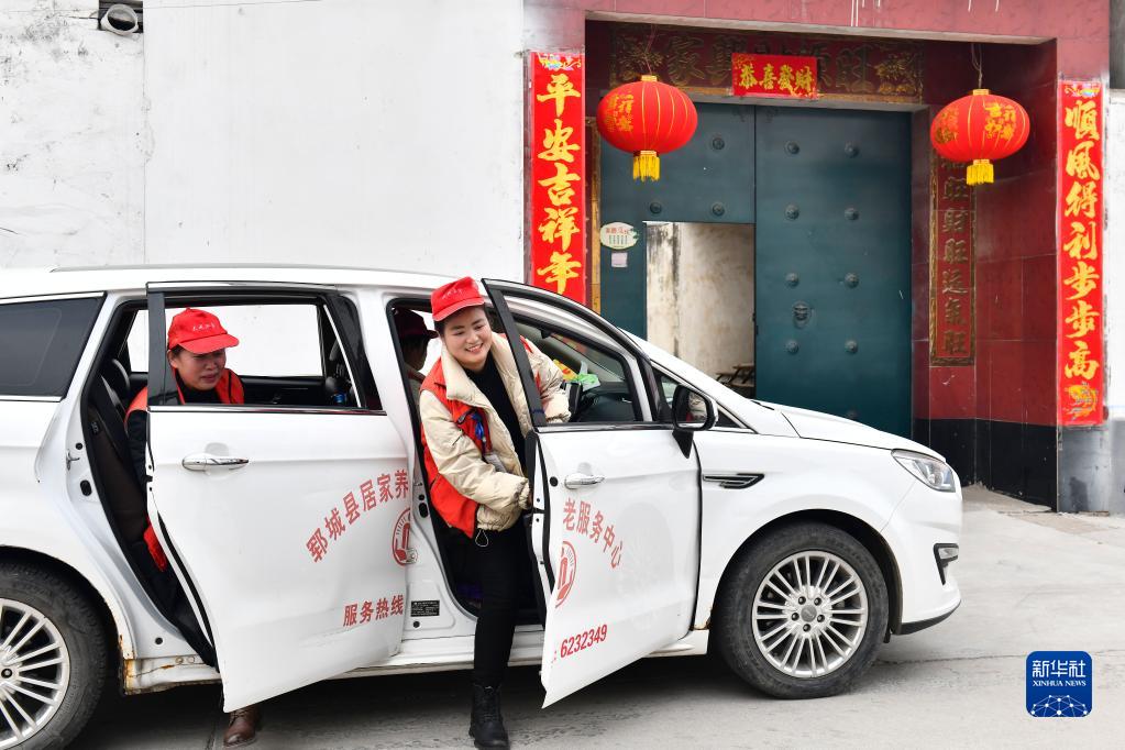 2月12日,在郓城县郓州街道王沙湾村,郓城县居家养老服务中心的工作人员前往魏金兰家提供养老服务。