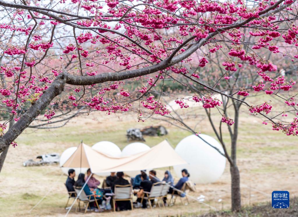 闽南春来早,樱花始盛开。近日,在福建省南靖土楼景区的紫云山生态园,6万多株樱花陆续盛开,吸引众多游客前来感受漫山的浓浓春意。