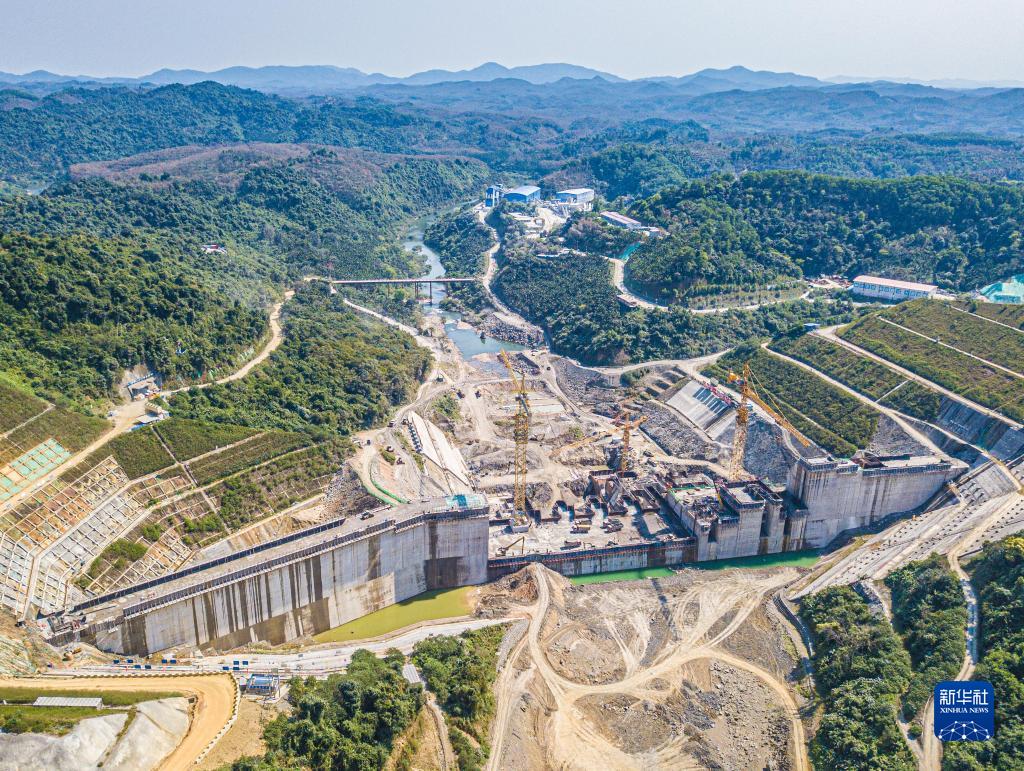 这是2月12日拍摄的迈湾水利枢纽工程(无人机照片)。