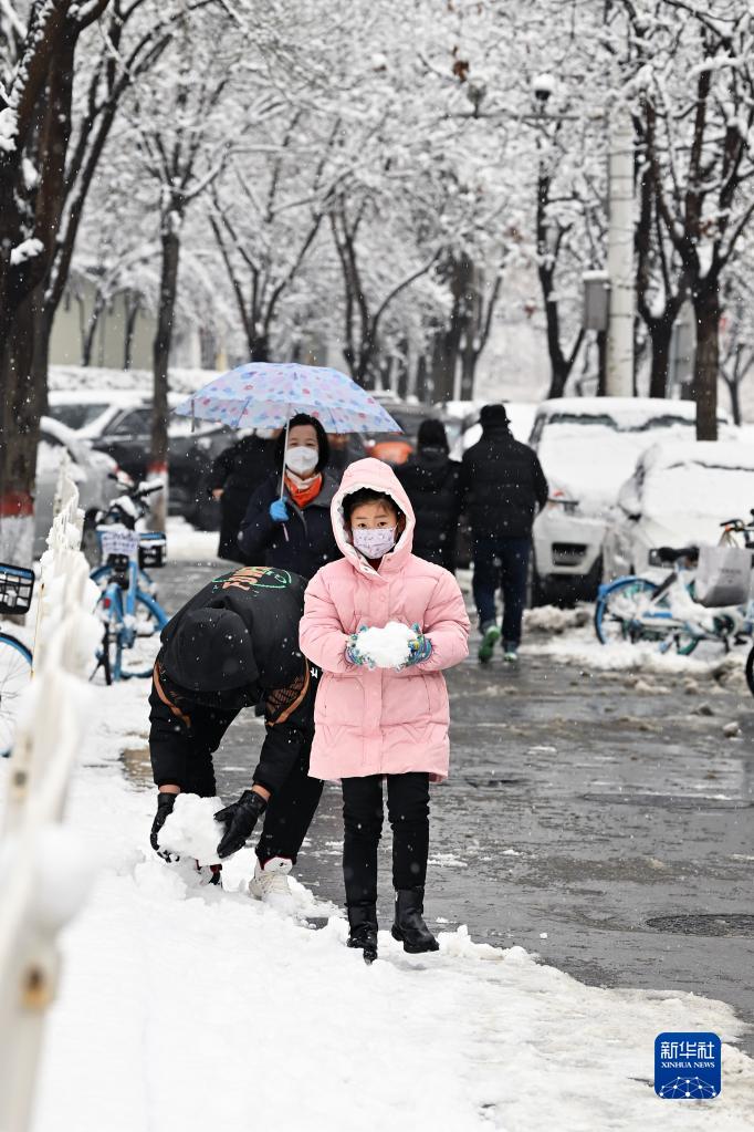 当日,山西省太原市迎来降雪天气,雪落枝头,景色迷人。