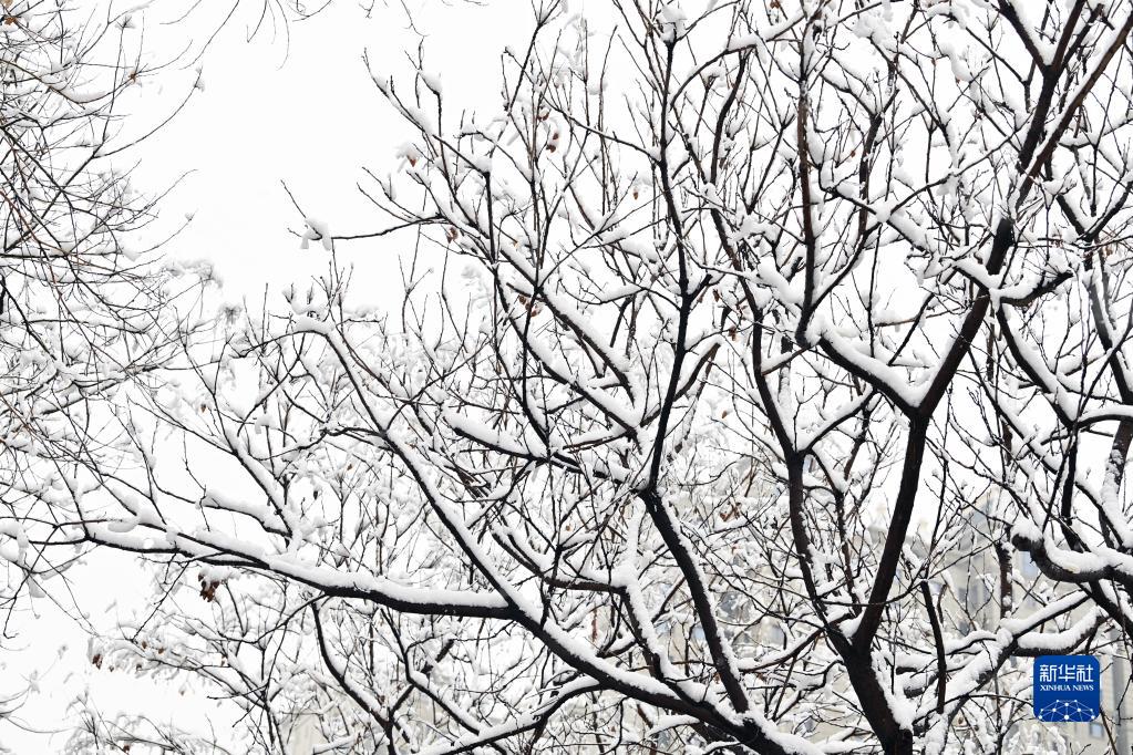 当日,山西省太原市迎来降雪天气,雪落枝头,景色迷人。