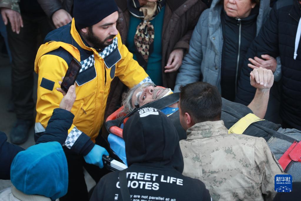 2月10日,救援人员在土耳其哈塔伊省安塔基亚市转移幸存者。