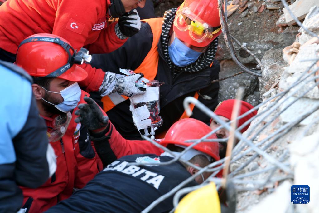 2月11日,救援人员在土耳其哈塔伊省安塔基亚市参与搜救。