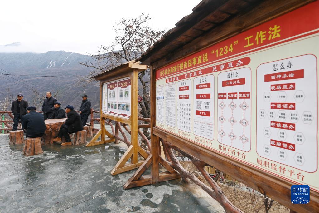 在陇南市宕昌县官亭镇王家村,村民向“民事直说委员会”成员反映诉求(2月8日摄)。