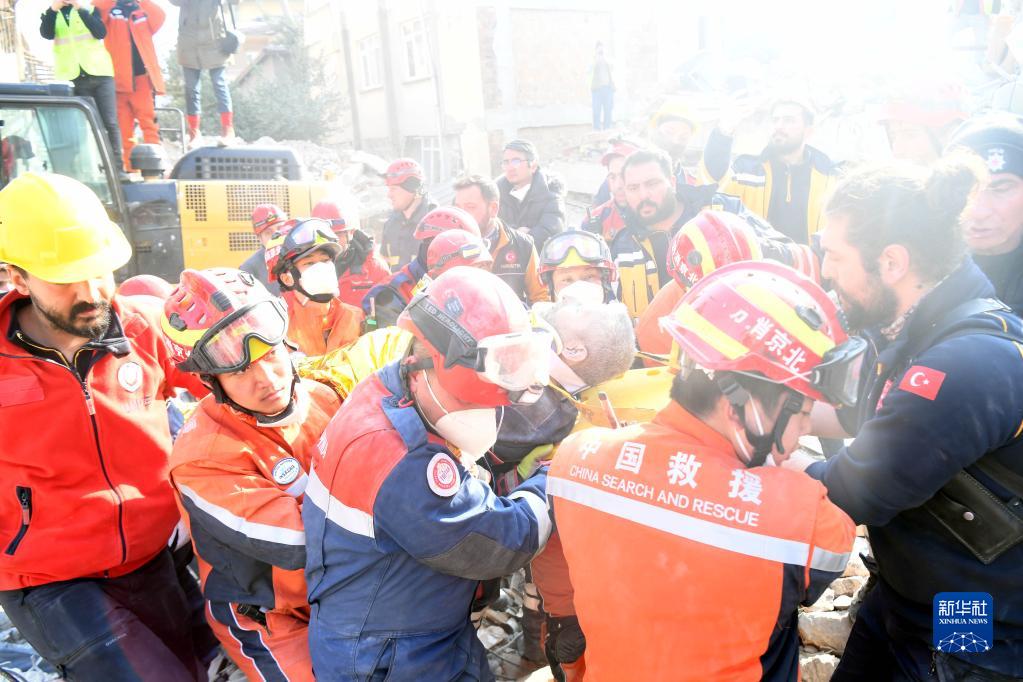 当地时间12日下午,正在土耳其哈塔伊省安塔基亚市实施搜救的中国救援队营救出一名幸存者。