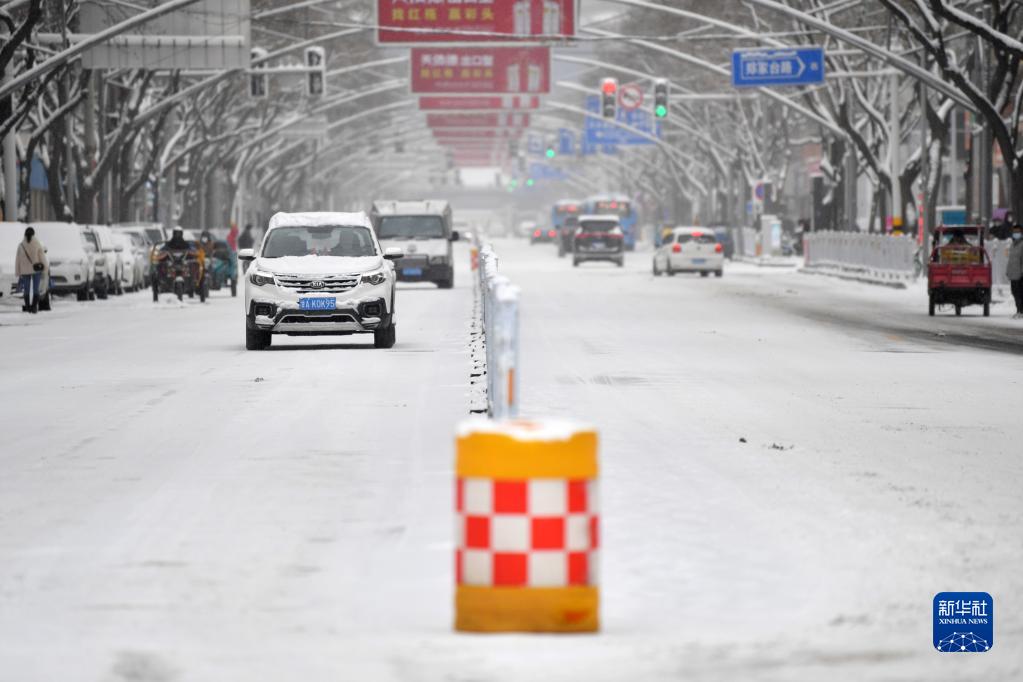 2月13日,车辆冒雪行驶在兰州市城关区皋兰路上。