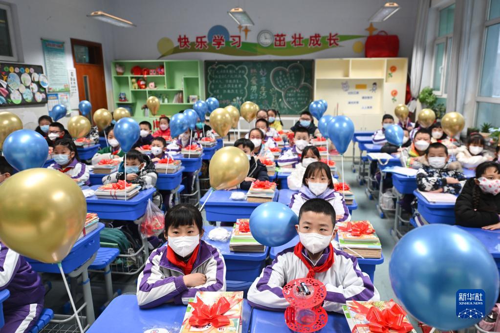 2月13日,在西宁市城西区文汇小学,学生在上课。