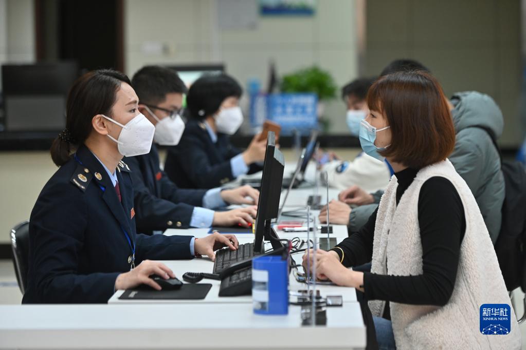 2月13日,在福州市闽清县办税服务大厅,工作人员向企业工作人员介绍税惠政策。