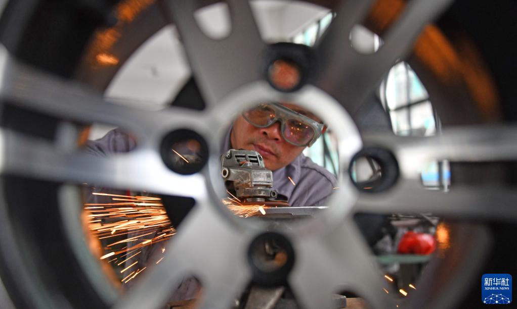 2月13日,浙江省台州市仙居县一车业公司车间,工人进行汽车零配件打磨作业。