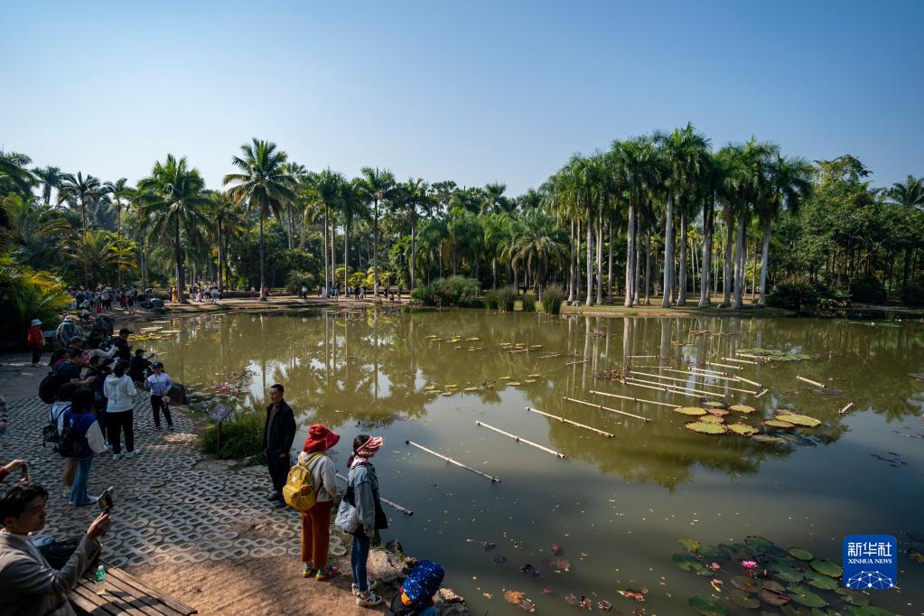 2月12日,游客在位于西双版纳州勐腊县勐仑镇的中国科学院西双版纳热带植物园内游览。